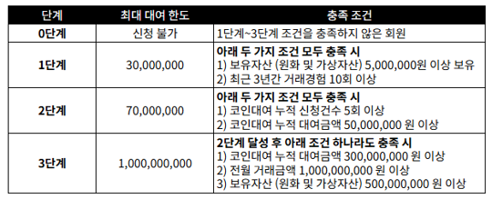최대 대여 한도는 아래 표를 기준으로 산정됩니다.