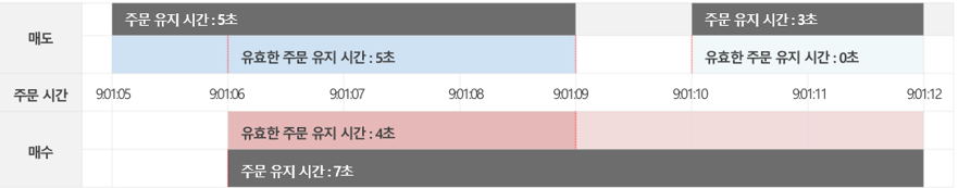 또한 매수 매도 주문이 동시에 유지된 시점에 유지시간이 유효 주문으로 인정됩니다.