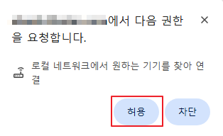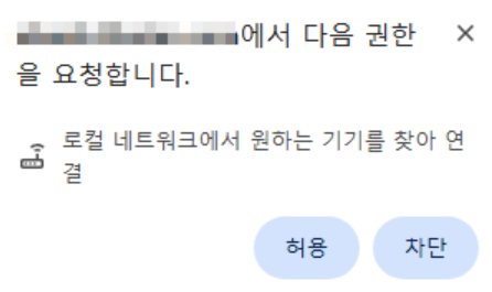 크롬 브라우저 141 버전에는 보안 강화를 위해 로컬 네트워크에 대한 접근 요청 시 사용자에게 권한 허용을 묻는 창이 표시됩니다.